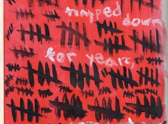 I felt trapped while doing this piece. Like I was being held captive in my own life and by the expectations I have for myself and the expectations others have of me. The more ticks I made to symbolize the days passing, the more it felt like I wasn’t keeping count of the days, weeks, months, and years going forward–but more like it was counting the days going backwards. These days marked here are a journey to the past. To the first moment I felt that drag of ennui; the first time I felt desperate in my life and longed for it to be over somehow; to before I was born and into the lives of those who came before me and from whom I inherited all my current conditions, phobias, and anxieties.